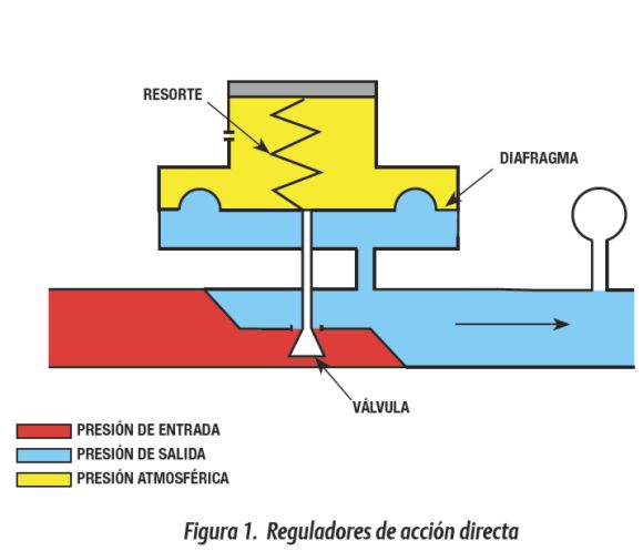 Los reguladores de acción directa constituyen el estilo más simple de reguladores. A presiones bajas, normalmente por debajo de 0,07 bar / 1 psig, pueden lograr un control muy preciso (±1%). A presiones de control altas, de hasta 34,5 bar / 500 psig, se suele conseguir un control del 10 al 20%.
