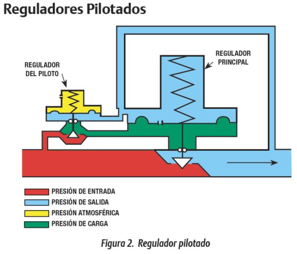 Los reguladores pilotados están indicados para coeficientes de caudal altos o aplicaciones que requieran un control preciso de la presión. Un tipo extendido de sistema accionado por piloto emplea un control de dos vías.